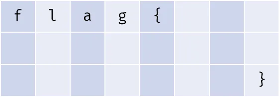 keysset = [twocharkey(0,'f'),twocharkey(8,'l'),twocharkey(16,'a'),twocharkey(24,'g'),twocharkey(32,'{'),threecharkey(40),threecharkey(48),lastcharkey(56)]