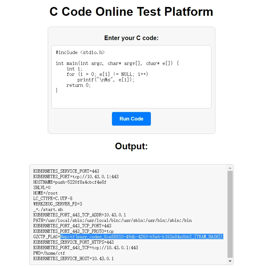 你很会写代码吗,你会写有什么用!出来混 讲的是皮 tips:flag格式为Nepctf{},flag存在环境变量
